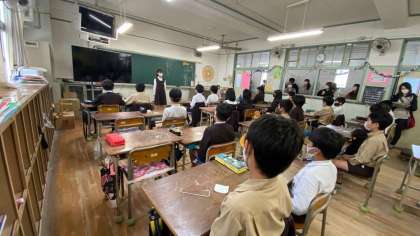 4年生は、英語学習発表。自己紹介と未来の「夢」を英語で発表。お医者さんや学校の先生、スポーツ選手など、たくさんの「夢」を聞くことができます。また、英語でゲームや足し算する学級も。英語って、おもしろい!
