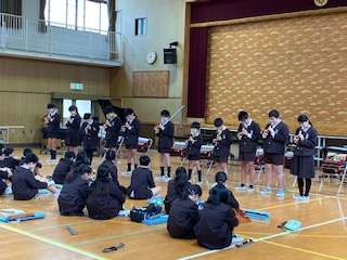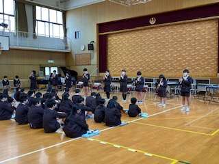 6年生は、講堂で「Let's music!!」