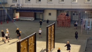 休み時間の皆さんの様子です。日が当たっている運動場はポカポカと暖かく、児童の皆さんも元気に動いています。