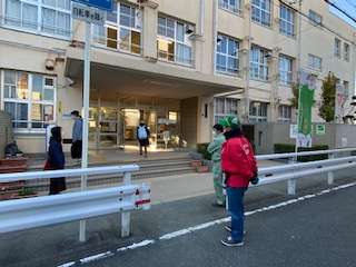 早朝より、青少年指導員、補導員の方々が、正門の前で児童の皆さんに「おはようございます」と、声を掛けてくださいました。
