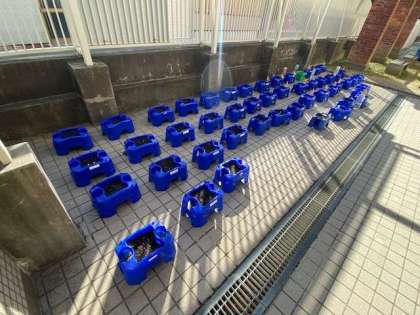 先日、1年生がチューリップの球根を植えました。何色の花が咲くか楽しみです。手植えの様子を見逃してしまったので、来春の咲いた様子をバッチリ残したいです。