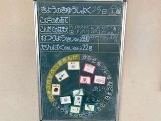 本日は、クリスマス。昨日の食卓には、チキンがあったのかな?給食では、お魚を出しています。お肉、お魚、野菜をバランス良く食べて、病気に負けない体を作りましょう。