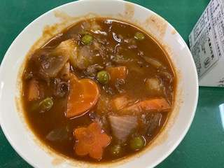 ビーフシチューには、ラッキー人参が入っています。本日のラッキーさんは誰だったでしょうか。誰にでも幸運が訪れますように。