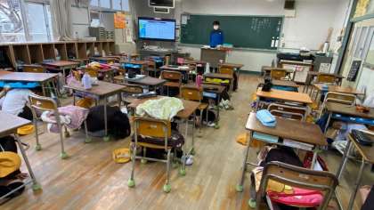 さて、本日は地震と津波発生時の避難訓練並びに防災学習を実施する予定でしたが、緊急事態宣言が発出され、保護者への引き渡し訓練は中止とさせていただきました。