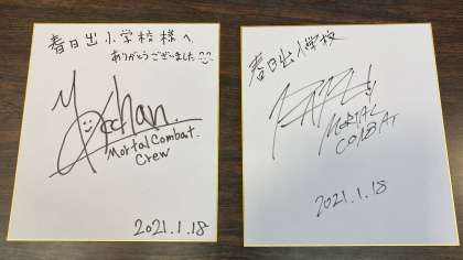 最後に、学級に1枚ずつサインをいただきました。アスリートたちは、2024年のパリオリンピックに正式種目になった「ブレイキン」で、金メダルを獲得するため、これからも日々、練習に練習を重ねていくそうです。がんばれ!にっぽん!