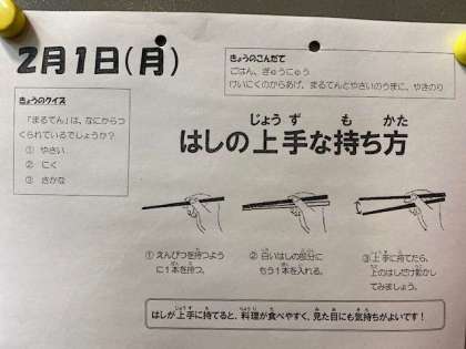 箸の上手な持ち方を載せておきます。練習してみましょう^_^