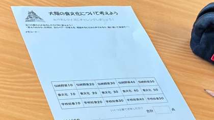 大阪の食文化やなにわの伝統野菜、給食について、お話を聞き、クイズ形式で知識を深めました。児童からは、「大阪の食文化がわかった。」「伝統野菜がたくさんある事がわかった。」「たこやきって言う星があるとは。」などの感想が出ました。