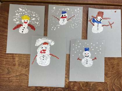 みんな、かわいい雪だるまを描くことができました。