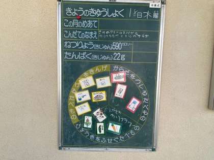 いよいよ6年生は、小学校最後の給食。皆さんの身体を大きく、元気になるように、栄養バランスを考えて作ってきました。中学生になっても、偏食せずに3食をしっかり食べてくださいね。小学校の給食の事も、思い出してください。