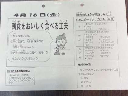 給食室に係で来てくれている子に「ピーマン食べれる?」と聞くと、「ピーマン、大好きやで!」と元気に答えてくれました。緑黄色野菜に分類させているピーマン。量ではなく、バランスよく食べるように心がけてくださいね。