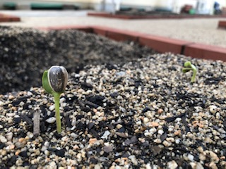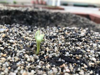 今日、朝学習園に行くとひまわりが芽を出していました!