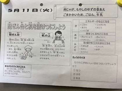 今日の給食は、肉じゃが、もやしのゆずの香和え、ごまかか炒めです。