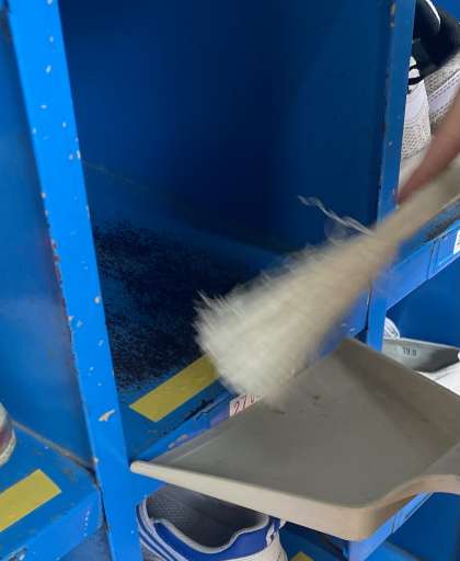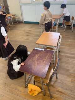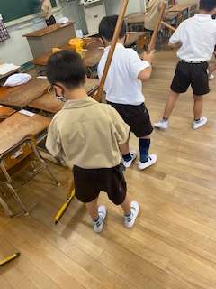 午後からは、生活科の学習でそうじをしました。ほうきの使い方や、机を印に合わせて整頓することを学習しました。みんな、とてもはりきっていました。