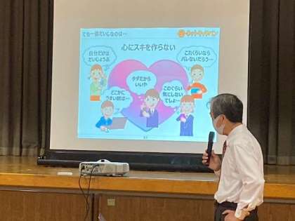 今日は、講師の方をお招きし、スマートフォンやパソコンによる、インターネット使用上に潜んでいる危険性について、お話をしていただきました。