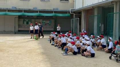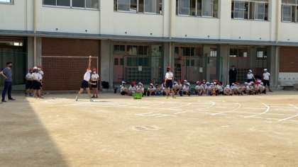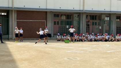 今日は、梅香小学校の運動場をお借りして、5年生の体力テストを行いました。
