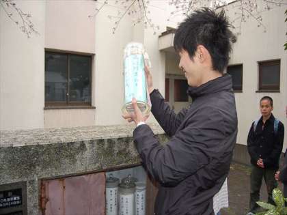 丁度10年前に卒業した方々が春日出小学校に集い、体育館横に設置している「10年後に会いましょう」の碑の中から、当時書いた作文を取りだし、昔を懐かしむ恒例の行事です。