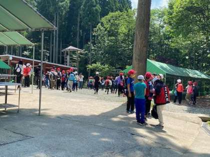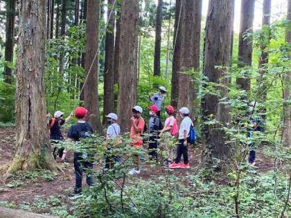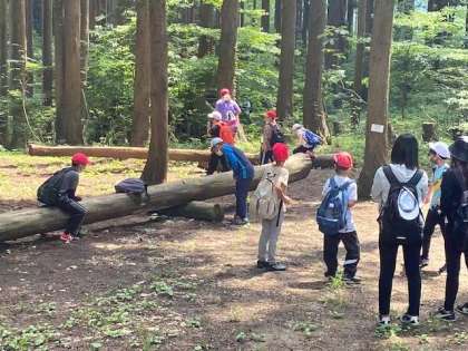 お昼からは、自然を満喫。アスレチックのある林の中を散策します。