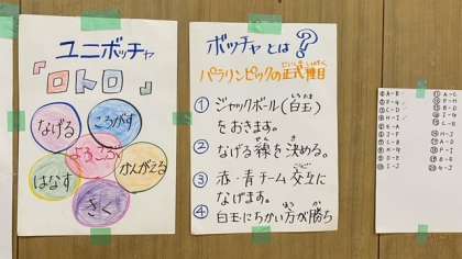 お昼から小学校体育館にて、10チームによる「ボッチャ選手権」が開催されました。