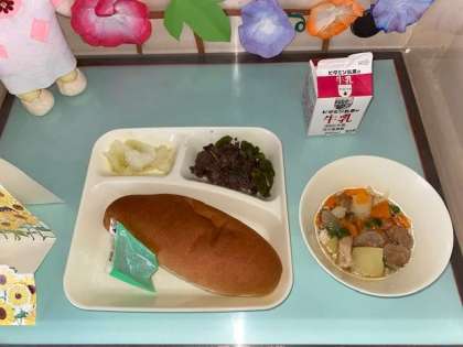 今日の昼食は、牛肉の香味焼き、スープ煮、サワーキャベツです。