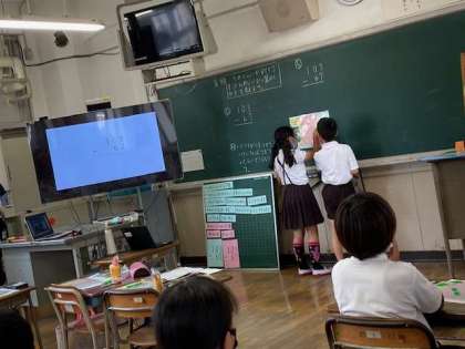 みんなの前で、解き方を発表します。さあ、解けるかなぁ?そのやり方に注目です。