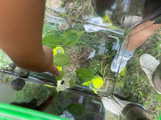 「ここでな、ぼくがこうやって・・・。」と、つかまえた時の様子をいきいきと話していました。つかまえた虫たちは、クラスの靴箱の上で飼っています。