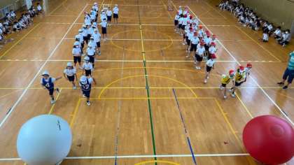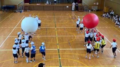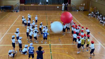 3回戦、4回戦は、大玉を皆さんの頭上を運んでいきます。
