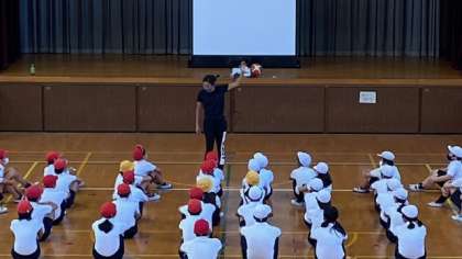 講堂では、15mほどの距離しか全力で走れませんが、走るコツはつかめたようです^_^