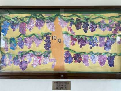 さて、食欲の秋。正門に入ってすぐの掲示板には、様々な色のぶどうが飾られています。食べ物が美味しい季節になります。しっかり食べて、健康を保ちましょう!