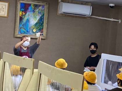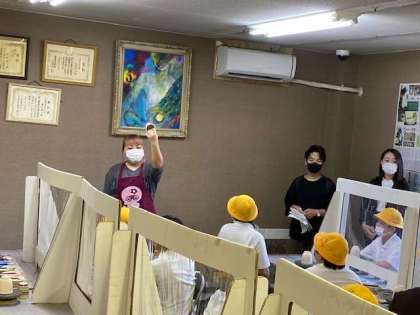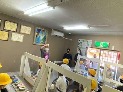まずは、陶苑の方から説明をしてもらいます。そして、絵をつけていきます。