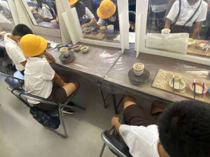 真剣そのもの。短な時間ですが、皆さん、スムーズに絵付けしていってます。