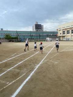 走る前には、6年生が、走るコツを教えてくれました。アドバイスを受けてどの子もゴールめざして、力いっぱいかけぬけました。