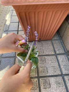 1.オリジナル花瓶に育てた花をかざる。