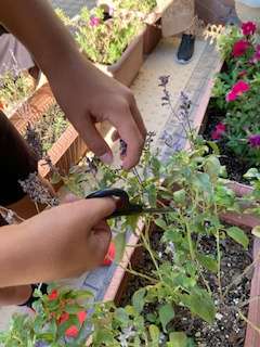 畑では、花と野菜を育ています。大きく育つように、栽培委員会のみんなが毎日世話をしています。