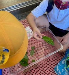 放課後、調べてみると、珍しいケースとして、マリーゴールドに産卵するアゲハチョウがいることがわかりました。大発見でした!