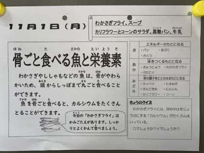 11月1日(月)の給食