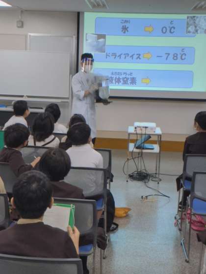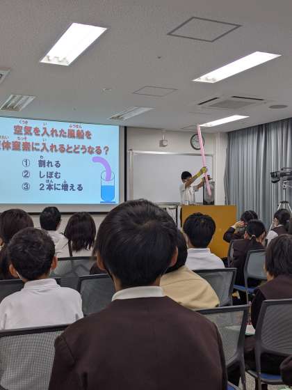 見学の前にまずは実験教室!空気の性質を利用した実験を通して楽しく体験的に学びます!