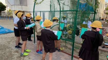 ネットの間に挟まって、変わった形で育ったヘチマもあり、「あれって、どうやって育ったのかなあ?」と言っていた児童もいました。