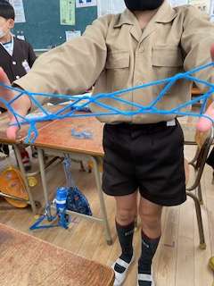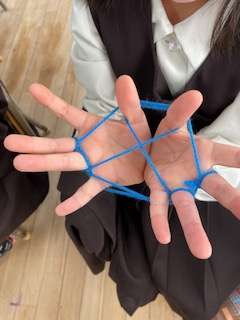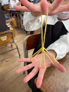 生活科で、むかし遊びをしました。運動場では「あんたがたどこさ」をして、教室では、あやとりをしました。