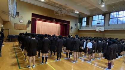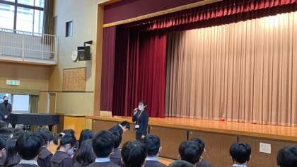 1月11日(火)、3学期がスタートしました。始業式を講堂で行い、冬休みの過ごし方の振り返りと、卒業式に向けて、また新学年への準備の3学期となるようにお話をしました。