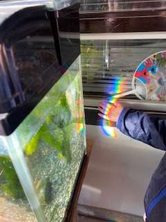 「見て、見て〜。ぼくの体がレインボーだよ。」