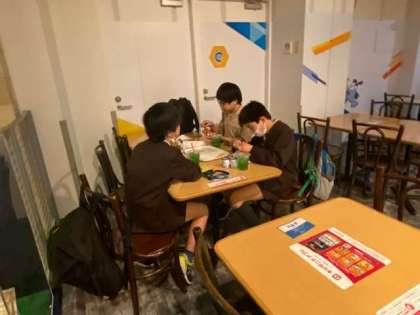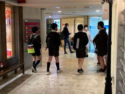 昼食を食べる人や何の仕事をするか探す人。散策中。