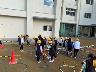 昨日お知らせしていたように、今日は運動場で、「ならべて ならべて」をしました。