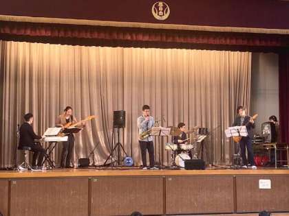 素敵な生演奏を5人の演奏者の方にディズニーメドレーや勇気100%、鬼滅の刃の曲など、児童の皆さんがよく知っている曲を聞かせていただきました。子どもたちから「アンコール」があり、ひまわりの約束と言う曲を演奏していただきました^_^