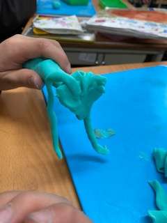 粘土の技、「ひねり出し」を使って、胴体から、粘土をひねり出して、手・足・翼などを表現し、今にも動き出しそうな、生きものができてきました。