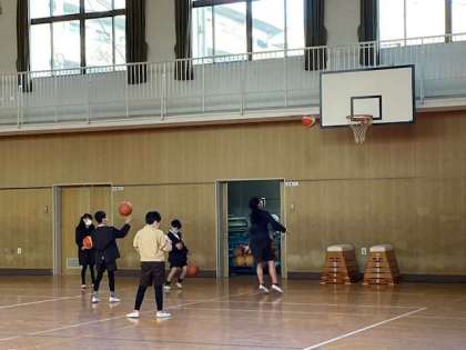 寒いけれど、お昼休みには外で鬼ごっこや、講堂ではバスケで遊んでいる様子が見られます。元気だね〜。