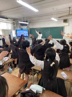 英語タイムは、「船長さんが言いました」の、あほうどりバージョンの歌あそびをしました。リーダー鳥の言う通りに、右手や左手を挙げます。とても楽しんでできました。