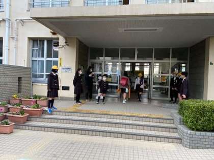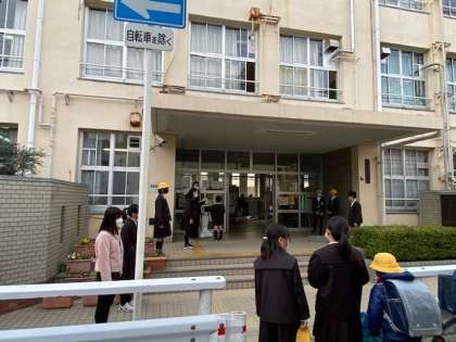 今日は学級代表さんによる、「あいさつ運動」がありました。一人一人に、元気にあいさつしています。玄関には、ペッパーさんもお出迎えしています。