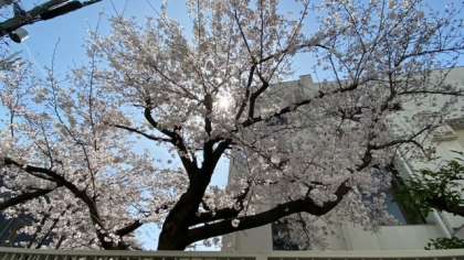 温かい日が続いて、本校の桜も満開に近くなりました。今年度もきれいな桜色となりました。