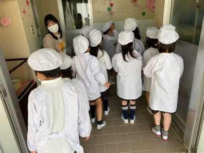 今年度初めての給食です。1年生もしっかりと食べていました。^_^
