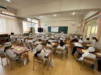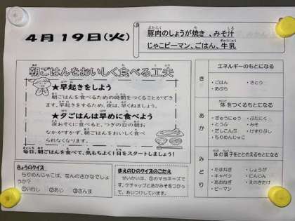今日の給食は、豚肉の生姜焼き、味噌汁、じゃこピーマンです。